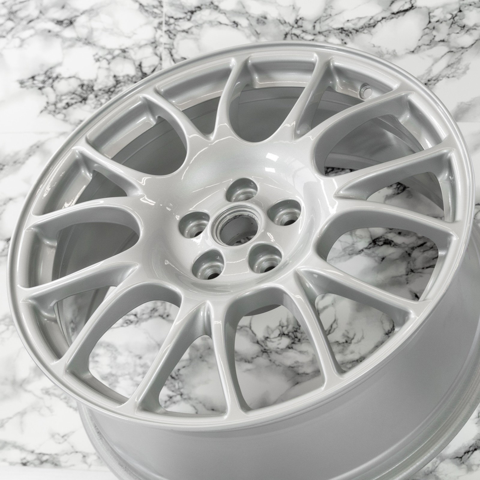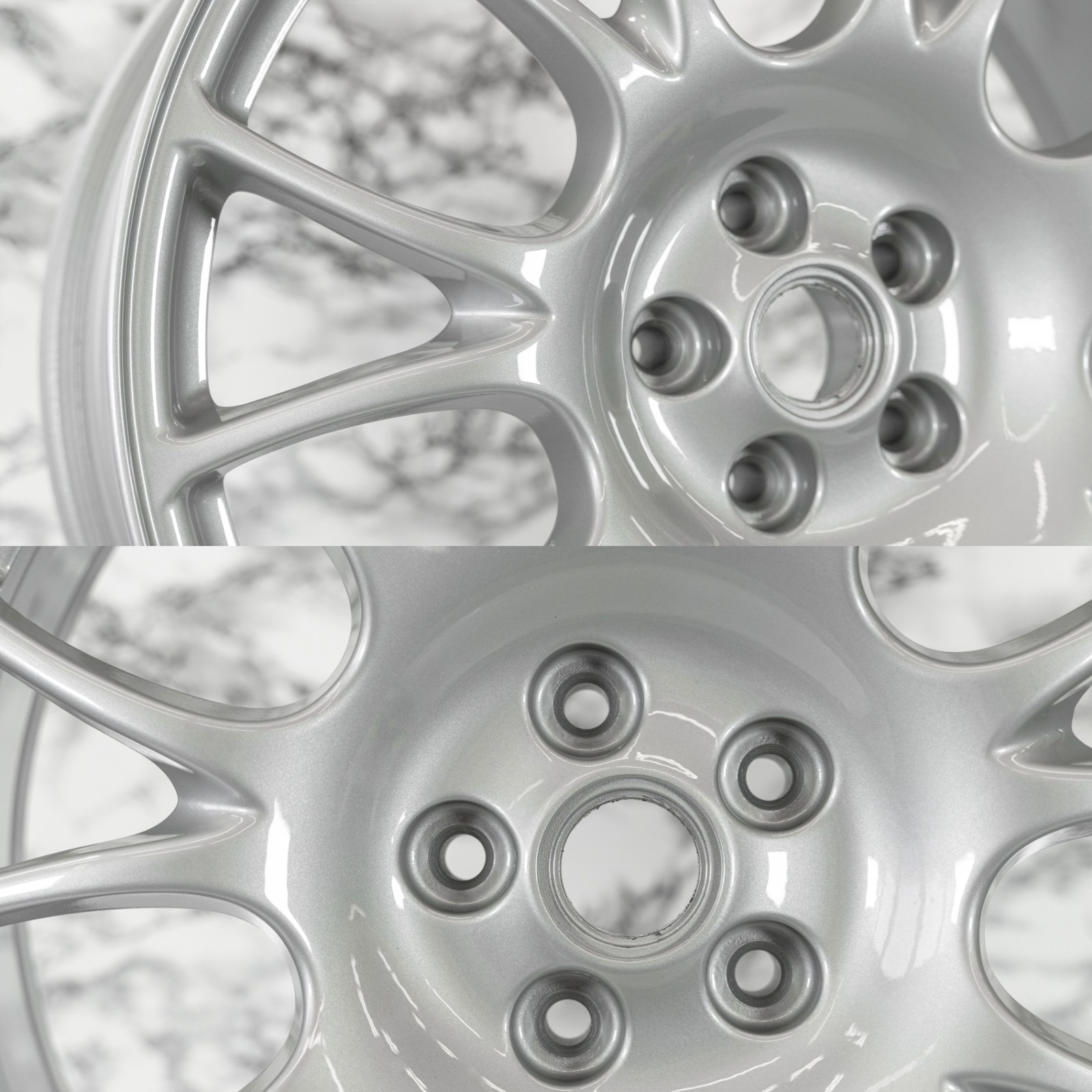 Repaired and refinished wheel. Rim was previously cracked and repaired as shown in images 21 & 22. Wheel also has some slight dust particles as shown in other images. Ready for next business day dispatch. Please see last image for estimated shipping delivery time.