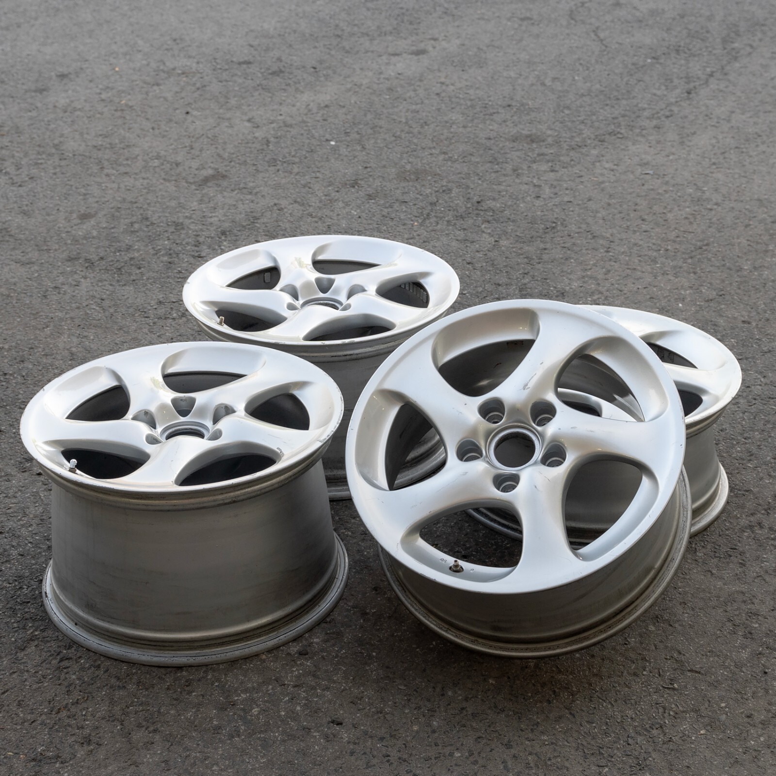 Pre-owned wheel set. Rims have some cosmetic scuffing and blemishing from previous road use. Not bent and never cracked. Ready for next business day dispatch! Please see last image for estimated shipping delivery time.