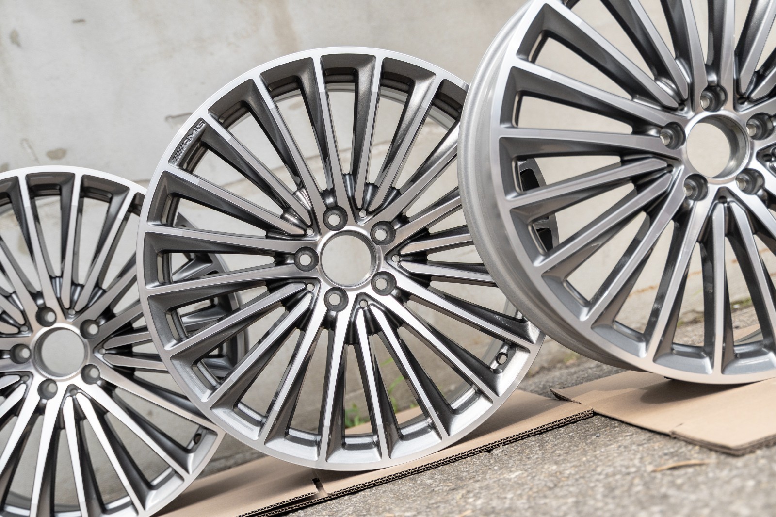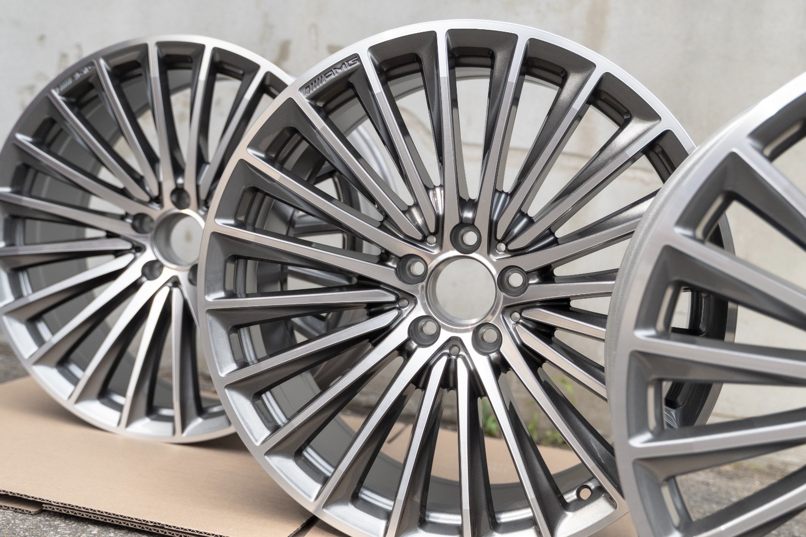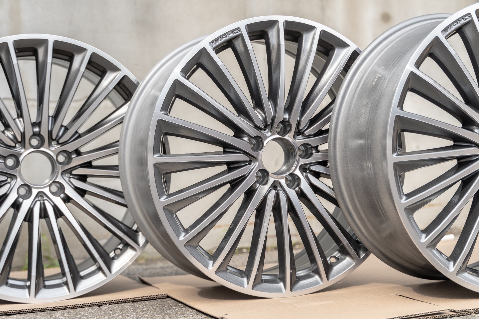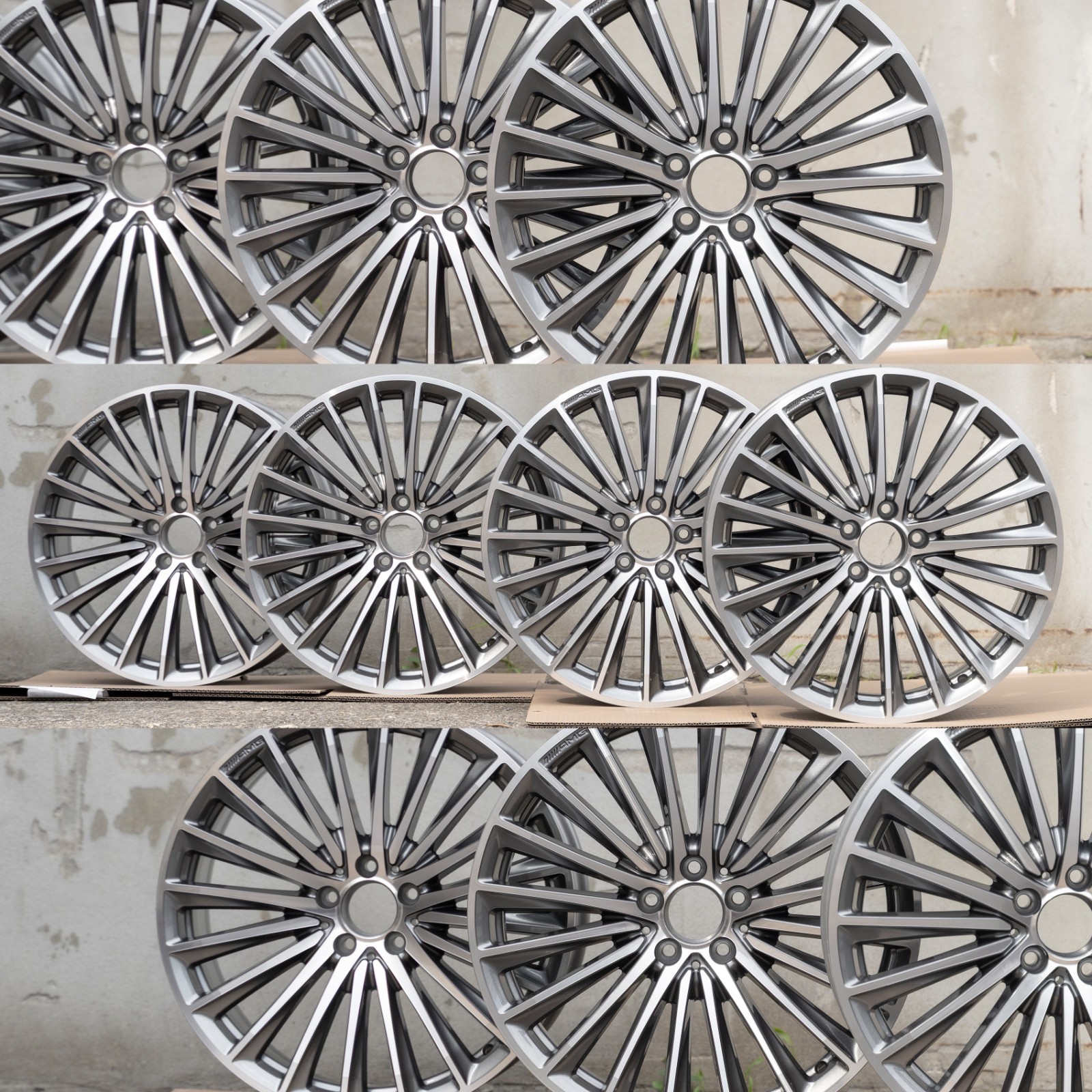 Brand new wheel set. Rims shipped in our own packaging as it offers better shipping protection than the original Mercedes boxes. Special order set requiring a 1-2 week lead time to dispatch. Please refer to last image for more information.