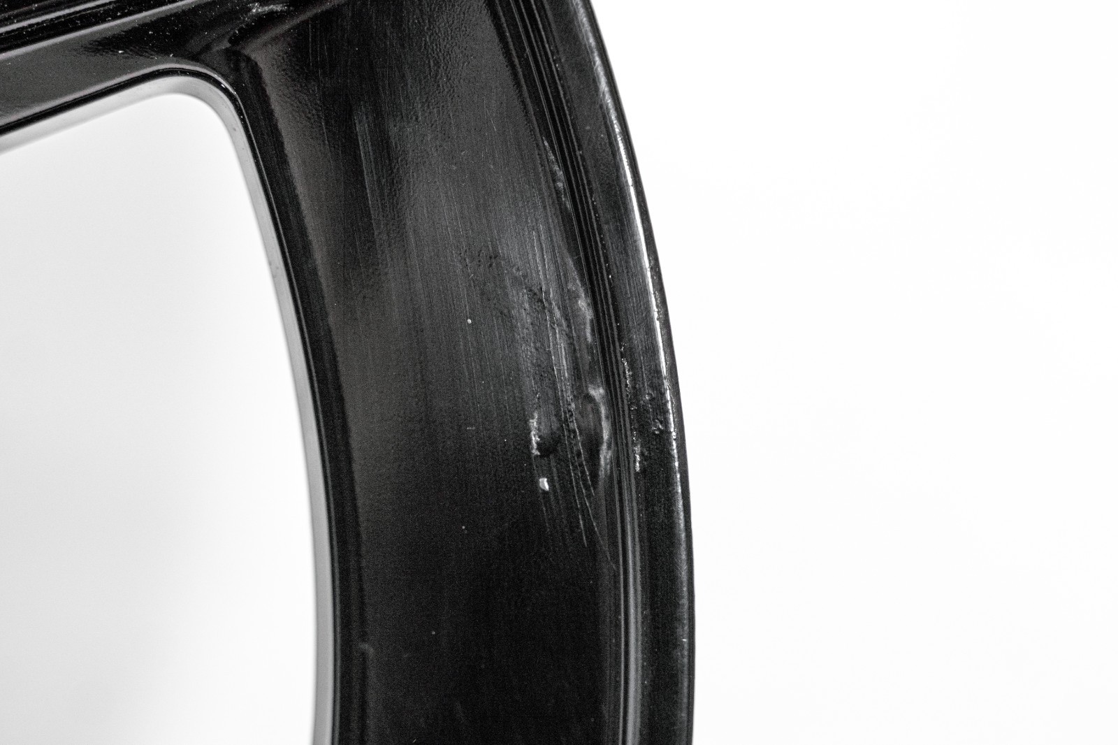 Pre-owned wheel having been previously refinished in black powder coat. Finish is not perfect and there are some unsprayed areas. Additionally, there is a damage on the lip from a drop as shown in the images. Not bent and never cracked. Ready for next business day dispatch. Please see last image for estimated shipping delivery time.